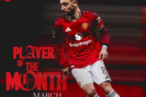 体育资讯3月27日讯 曼联官方宣布,B费当选3月份队内最佳球员。