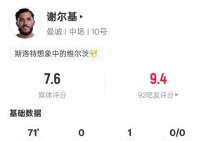体育资讯4月4日讯 足总杯1/4决赛,曼城主场迎战利物浦,谢尔基首发出战,贡献1次助攻,还有3次过人成功和2次关键传球,评分7.6。