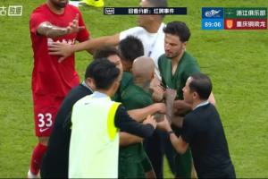 比赛第88分钟,浙江外援米特里策用手拉李镇全头发,主裁查看VAR后直红将米特里策罚下。米特里策非常愤怒,还想要冲上前去,队友赶紧把他拉住。